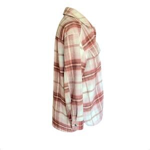Old Navy Heavy Flannel Shacket Cream Red Plaid Snap Front MEDIUM Fall Chores. Very thick flannel shacket, perfect for fall weather. Wear this to the hayride or for outdoor chores. Perfect with boots and jeans.