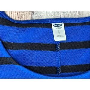 Old Navy Heavyweight Knit Blue Black Striped A-line Dress Sz 12 NWOT. 100% Cotton. Machine washable. Item in excellent New condition. No known rips, tears, holes, stains or defects.