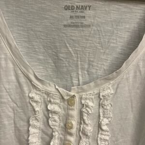 Old Navy white slub knit Henley t-shirt with eyelet lace ruffles along buttons. Size XXL