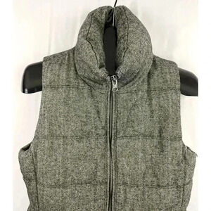 Old Navy Herringbone Wool Blend Puffer Vest SMALL Full Zip Lined