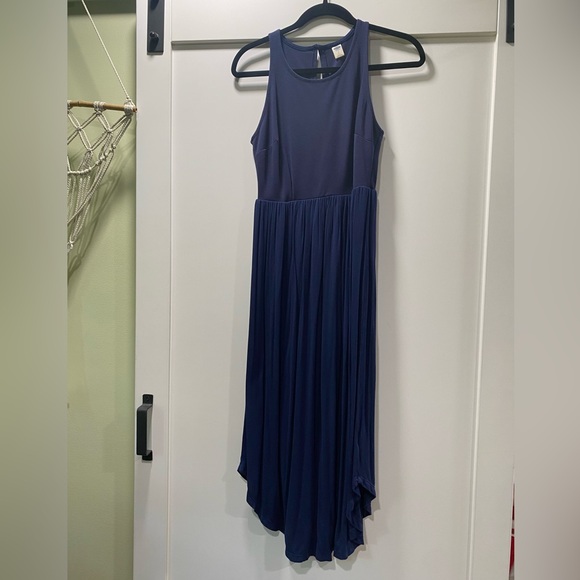 Chic dress in navy. Sleeveless design. Perfect for versatile styling. Can dress up or down. Fitted bust and loose skirt area. Sz small.
