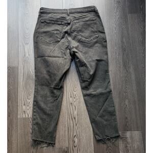 Old Navy High-Waisted OG Straight Ankle Jeans in a faded black wash with a frayed hem. These jeans are a popular style from Old Navy, known for their comfortable fit and versatile look.