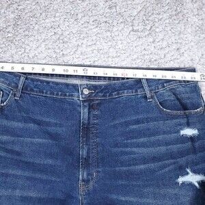 Women's Old Navy High Rise Rockstar Super Skinny jeans with secret slim pockets. Dark wash blue stretch denim pants with raw, frayed, or cutoff hem. Has small marker line on inside logo as shown in photos. No other noted flaws. Women's plus size 28, please note this brand can run large in plus sizes. Please see included Old Navy size chart. Real measurements shown in photos with jeans laid flat: