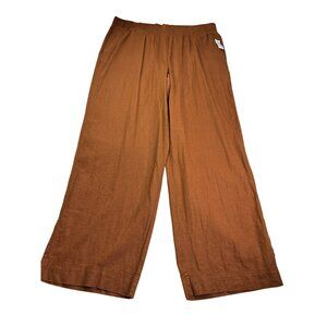 Old Navy High Rise Wide Leg Pants Linen Rayon Blend Size XL Tall Brown Elastic Waist 2 Pockets New