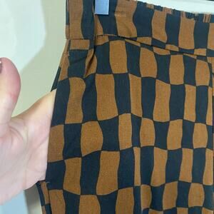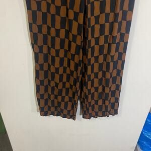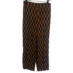 Old Navy High Rise Wide Leg Playa Pant Brown Retro Print Elastic Waist Sz M