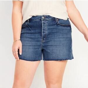 Old Navy High Waisted Button Fly Sky-Hi A-Line Cut-Off Jean Shorts Size 30 Plus