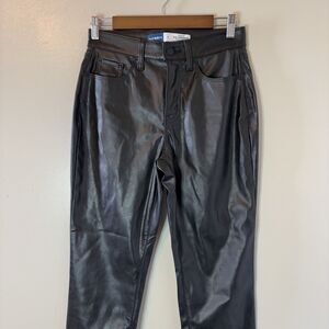 Old Navy High Waisted OG Straight Pants Black Faux Leather Womens Sz 2