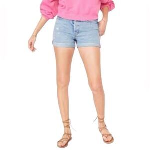 New with tag. waist 18" inches across laying flat. Button-fly. 3" inch inseam. Secret-smooth pockets. Cuffed. Subtle distressing. Excellent washed in look blue colors. Old Navy high-rise O.G. straight denim shorts n classic blue denim.