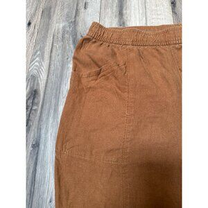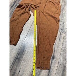 Old Navy High-Rise Straight Taper Pants L Rust Brown Elastic Waist Linen Blend