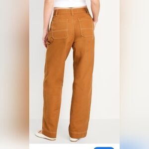 Old Navy high-rise straight utility pants in a warm brown shade. Features a classic button closure.