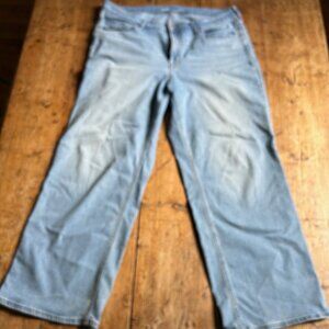 The oversized wide-leg jean of your dreams. Super comfy, soft drapey denim, very flattering. Size 18. Light wash (called "Light Dip" color by Old Navy.)