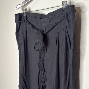 Old Navy High-Waisted Linen-Blend Cropped Wide-Leg Pants in Black Size XL Tall