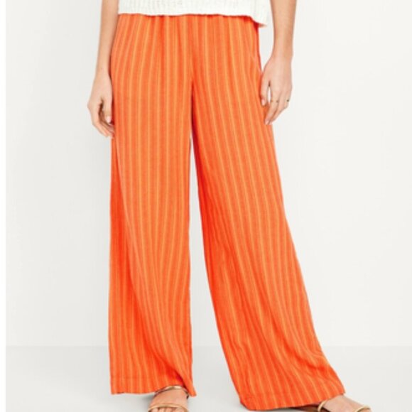 Old Navy High-Waisted Linen-Blend Super Wide-Leg Pants Orange Stripe L