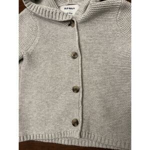 Gray knit cardigan sweater for 18-24 month size. Button closure down the front. Hood is a good size/biggish. Bought new and only worn a couple times.
