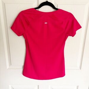 Stay stylish and comfortable with this vibrant pink athletic top. Perfect for workouts or casual wear.