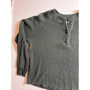Old Navy Hunter Green Cropped Thermal Henley Tee Small