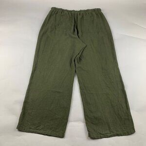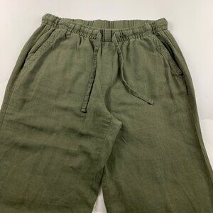 Great used condition, linen rayon blend pants have no significant signs of natural wear or overuse. Have softened from washing/drying but no holes or legitimate defects. 4 functional pockets, full elastic waist, front drawstring ties. Size Large, please reference measurements for sizing & fit inquiries.