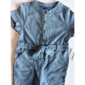 Old Navy Infant Girls 18-24M Blue Pants Romper Short Sleeve Belted Button NEW