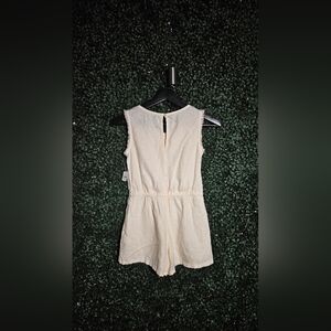 Elegant ivory romper with delicate lace accents. Perfect for any occasion.