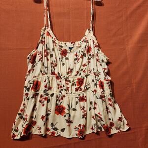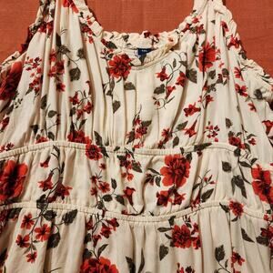 Old Navy Ivory Poppy Red Floral Flower Strappy Ruched Tank Size XXL