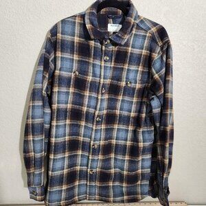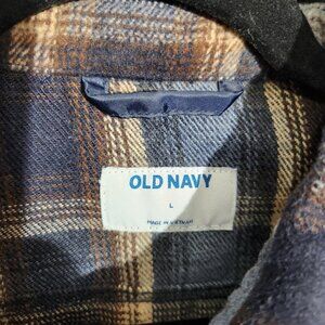 Old Navy Jacket Mens Large Blue Brown Plaid Flannel Shacket Button Shirt Jacket