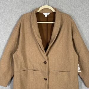 Old Navy Jacket Women Large Long Line Cardigan Car Coat Camel Peacoat Coatigan Tan Beige Brown Button Oversized Pockets Collar Corp Career Work Office Business Church Classic Casual Preppy Nautical Academia