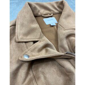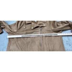 Old Navy Jacket Womens 3X Plus Tan Moto Zip Front Faux Suede Soft Stretch Coat