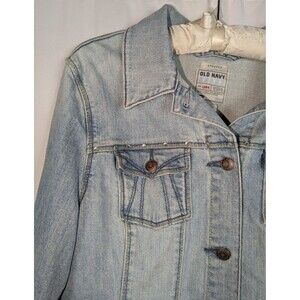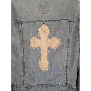 Old Navy Jean Jacket L Women's Blue Light Wash Upcycled Denim Cross Patch