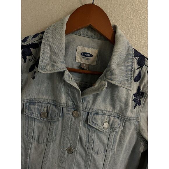 Old Navy Jean Jacket Women's size Small Embroidered Flowers Size Small Denim S