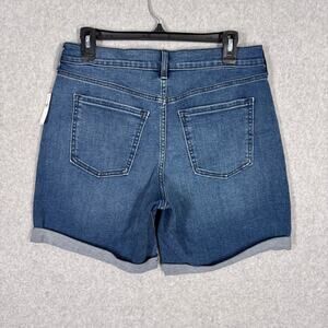 Old Navy Jean Shorts 4 Cuffed Bermuda Faded Stretch Mid Rise Casual 7 Inseam NEW