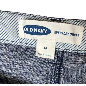 Old Navy Jean Shorts Womens 10 Polka Dot Chambray Flat Front Cotton Linen Blend