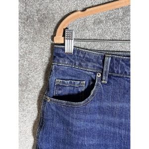 Old Navy Jean Skirt Womens Size 8 Stretch Blue Denim Raw Hem Pockets