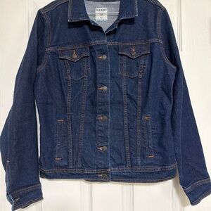Almost new Jean jacket. Dark wash trucker style jacket with front pockets. 23” from shoulder to hem. 21 1/2” at pot to pit seams.