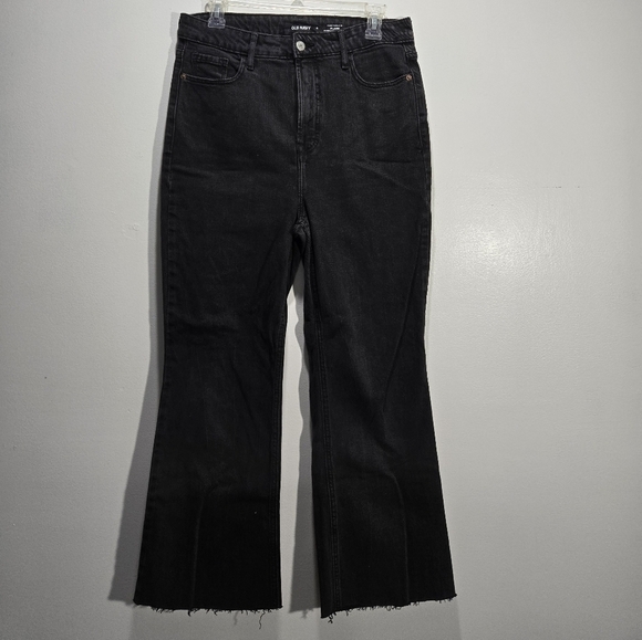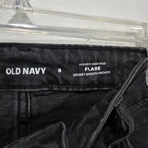 Old Navy Jeans Higher High Rise Flare Raw Hem Black Wash 8