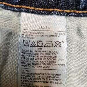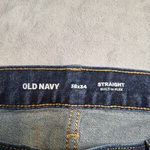 Visible markings: Waistband print reads "OLD NAVY 38x34 STRAIGHT BUILT-IN FLEX"
