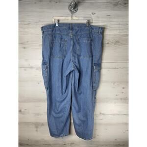 Old Navy Jeans Womens 20 Blue Mid-Rise Baggy Wide Leg Drapey Denim Cargo Pockets