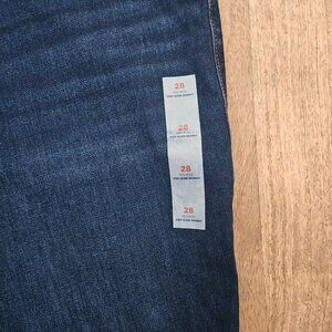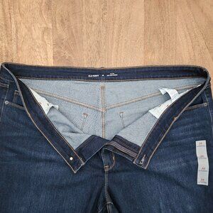 Old Navy Women’s Plus Size 28 dark blue jeans in a flattering mid-rise Pop Icon Skinny style. Classic 5-pocket design with stretch denim for comfort and a sleek, versatile look.