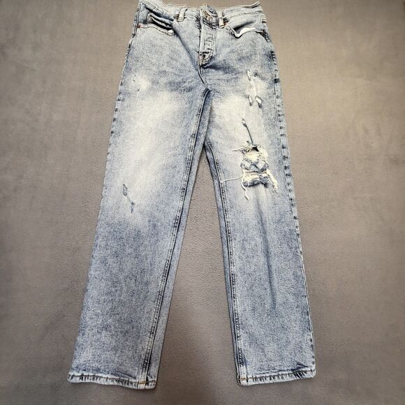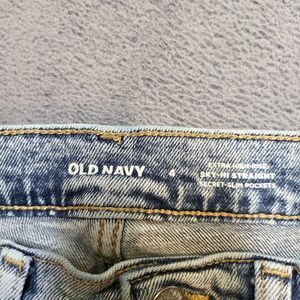 Old Navy Jeans Womens 4 Blue Sky Hi Straight Button Fly Distressed Denim Stretch