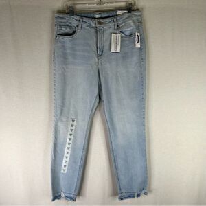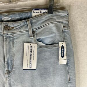 Old Navy Jeans Women’s Blue Power Straight High Rise Raw Hem Secret Pockets 14