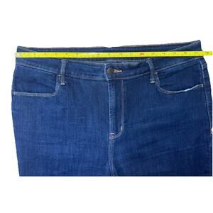 These Old Navy jeans for women in size 14 are a stylish addition to any wardrobe. With a high rise and flare style, these dark wash denim pants feature a solid pattern and a zip closure. Made with a cotton blend material that includes stretch, these machine washable jeans are comfortable to wear year-round, whether it's for a casual day out or a night on the town. The classic blue color and 5-pocket design add to the timeless appeal of these versatile denim pants.