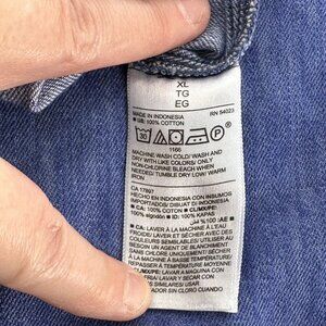 Old Navy Jumpsuit Blue Chambray Denim Pockets XL Elastic Waist Square Neck