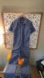 Features: Lightweight blue washed denim, collared, button front, short sleeves, two front chest pockets, two large front hip patch pockets, two rear pockets, waist tie for adjustable fit, sturdy utility workwear style