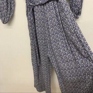 Old Navy Jumpsuit Small Long Sleeve Blue Paisley Floral Boho Cottagecore Prairie