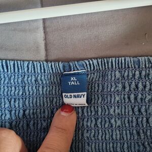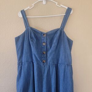 Old Navy Jumpsuit Women Sz XL Tall Blue Chambray Wide Leg Button Smocked Pocket