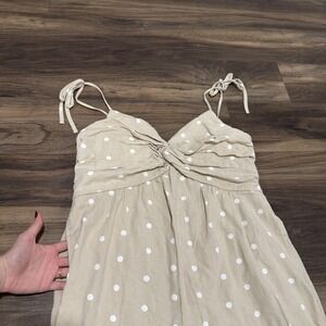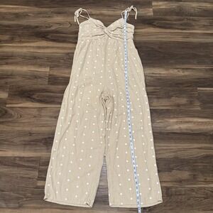 Old Navy Jumpsuit Womens Large Beige White Polka Dot Linen Blend Smocked Back