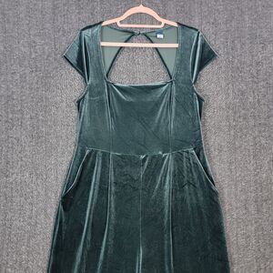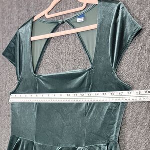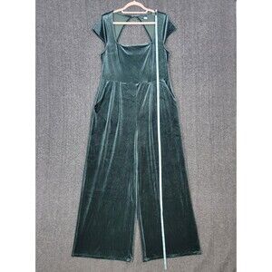 Old Navy Jumpsuit Womens Large Dark Bottle Green Velvet Short Sleeve Wide Leg