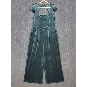 Old Navy Jumpsuit Womens Large Dark Bottle Green Velvet Short Sleeve Wide Leg.