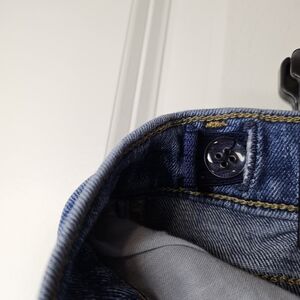 Description: boot cut, distressed jeans, button adjustable waistband, button/zip closure