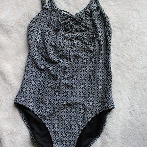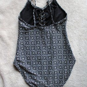 Old Navy Junior's Black/White Lace Front One Piece Swimsuit ~XS~