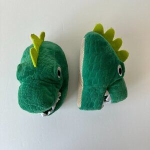 Old Navy Kids Boys Green Fleece Dinosaur Slippers Size Small (7-8)